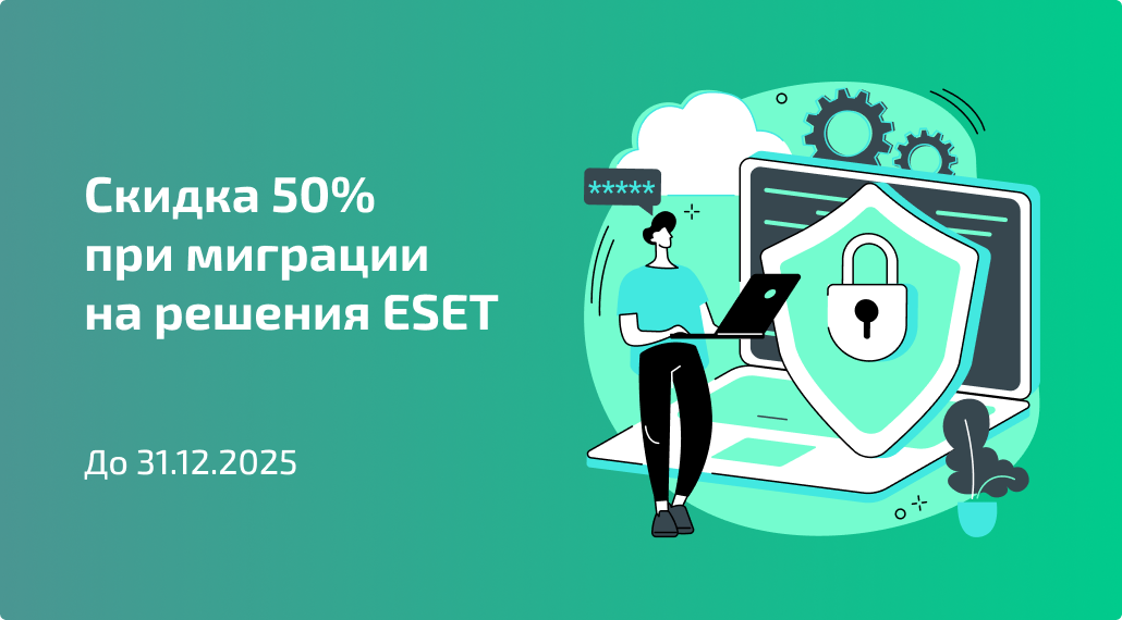 Только до 31 декабря 2025 года организации, использующие продукты других производителей смогут осуществить переход на решение ESET для обеспечения комплексной защиты своих ИТ-сетей со скидкой 50%. Предложение действует при условии новой покупки для защиты не менее 5 ПК*. Следует отметить, что миграция осуществляется на аналогичный по функциональности продукт и на аналогичное количество устройств.